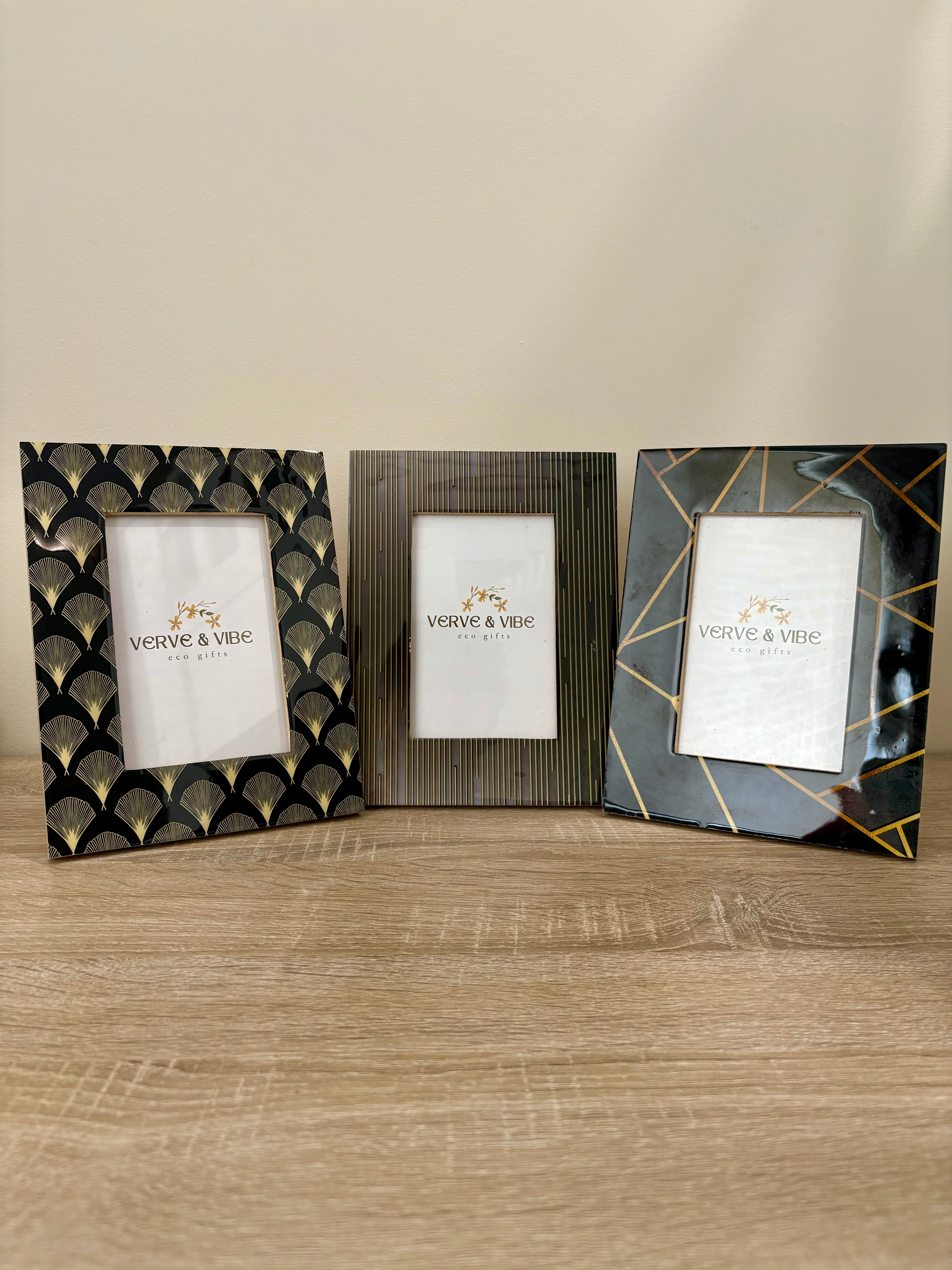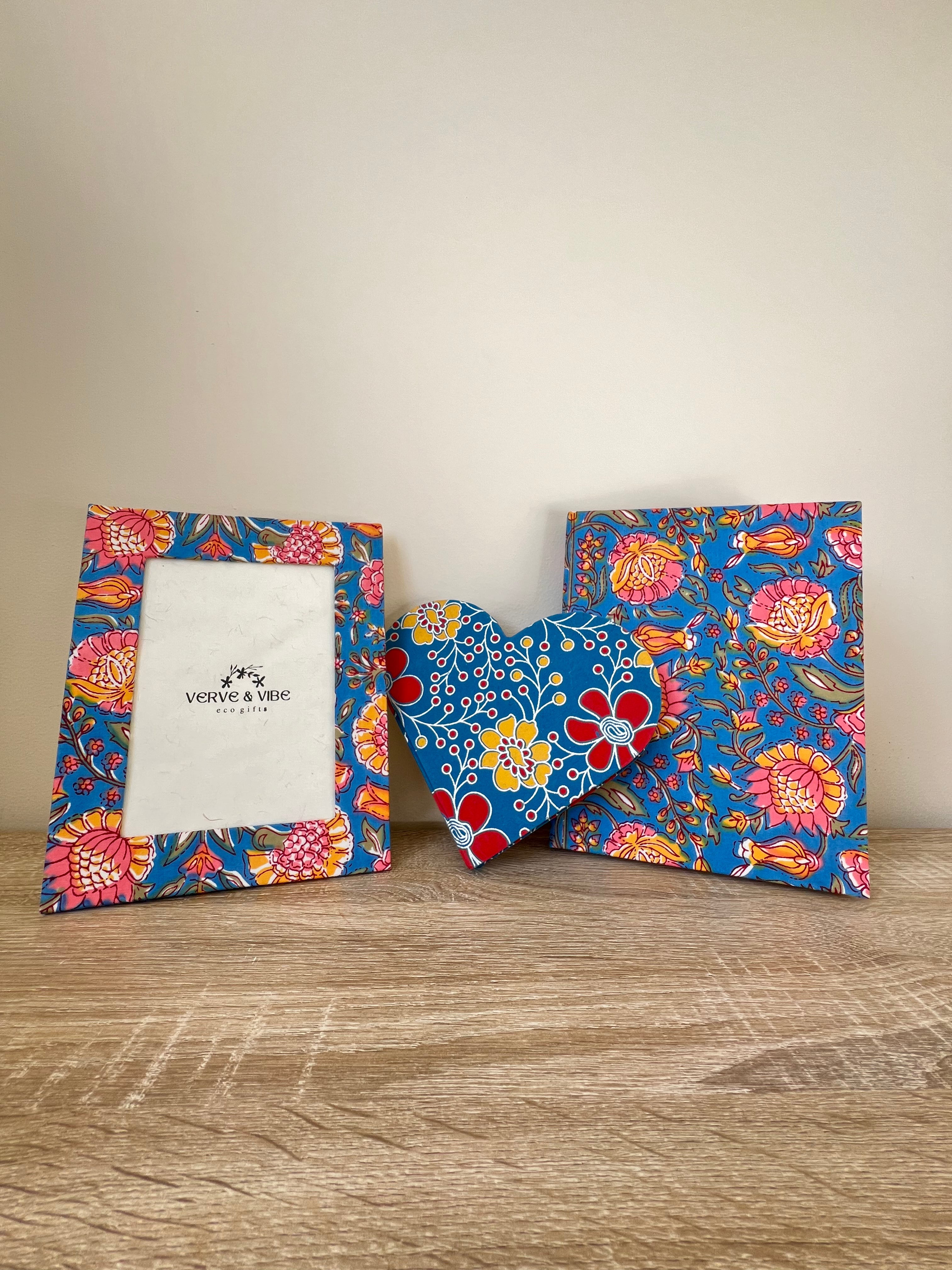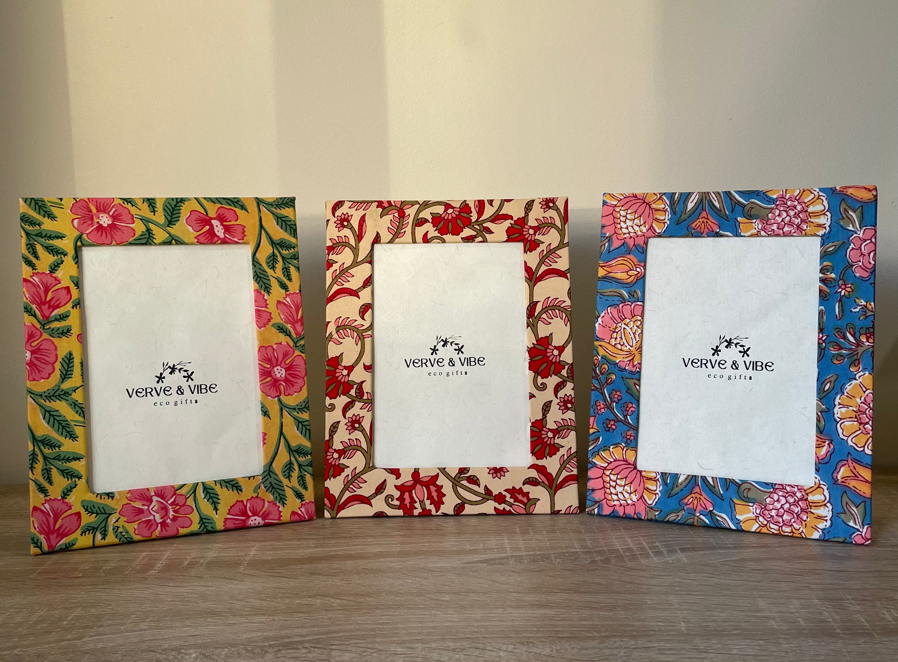 Showcase your fave moments in style. Handcrafted with printed fabric, recycled paper, wood, fibre board, these photo frames capture your precious memories adding a touch of elegance to your living space.