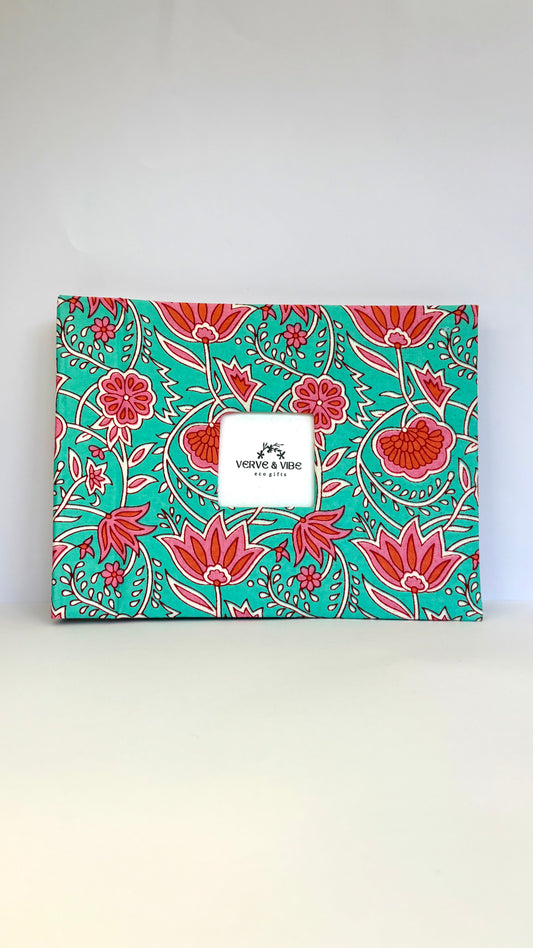 Firozi Flora - Stationery Gift Set, Fabric Journal + Memo Block + Pen Holder with Pen, (Boxed)
