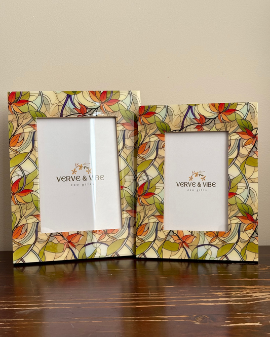 Leafy Orange Lily Handcrafted Wood Photo Frame