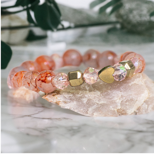 Love Blossom Orange with Golden Beads, Imitation Quartz Bracelet