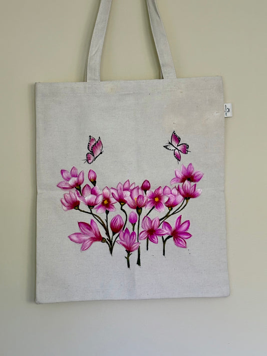 Pink Hakea Blooms - Hand Painted, Canvas Tote Bag