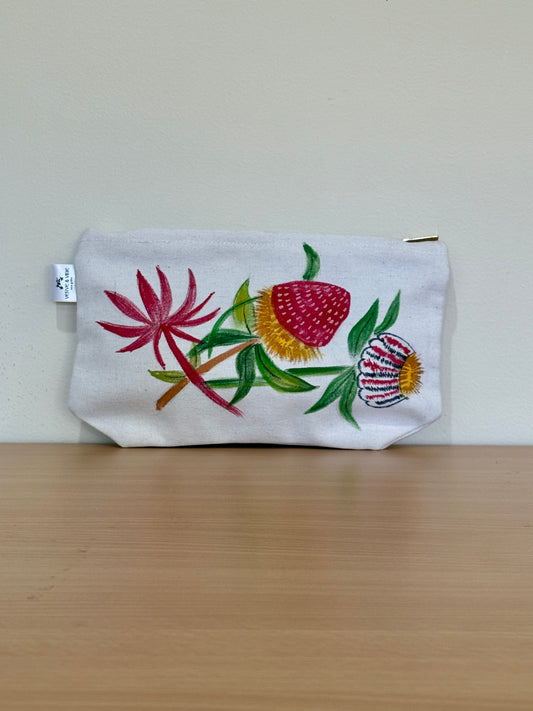 Pink Hakea Blooms - Hand Painted,Canvas Zippered Pouch