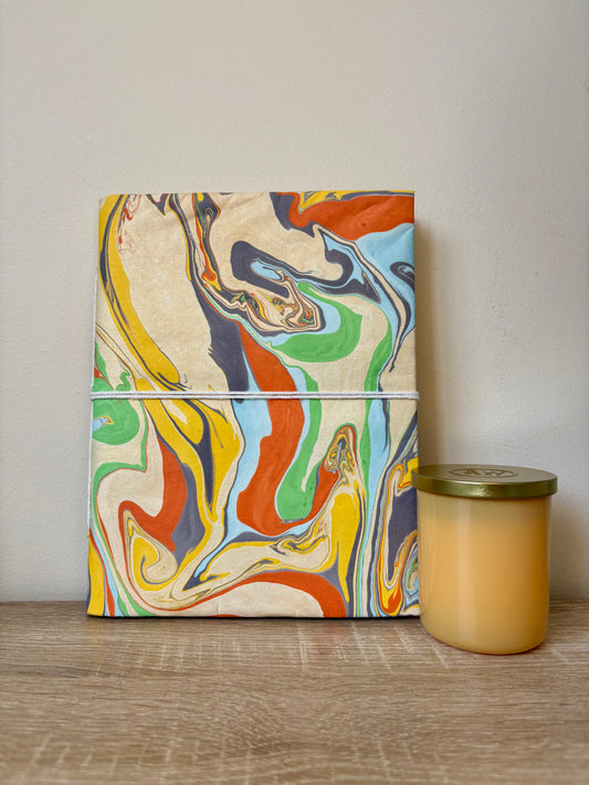 Passionate Pyra - Marbled Cover and Flower Paper, Handmade Blank Journal