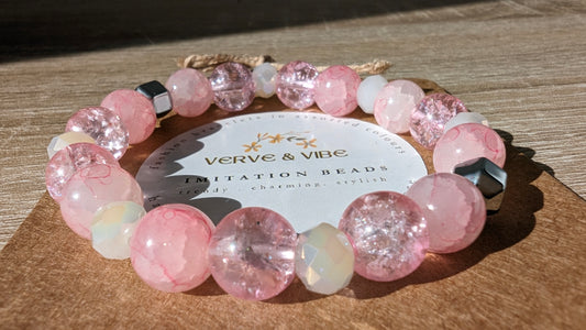 Pink Crackle Crystals, Imitation Quartz Bracelet