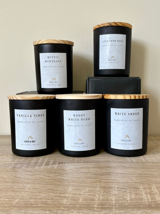 Premium Black Frosted Glass Jar, Scented Soy Wax Candles, 400g (Boxed)