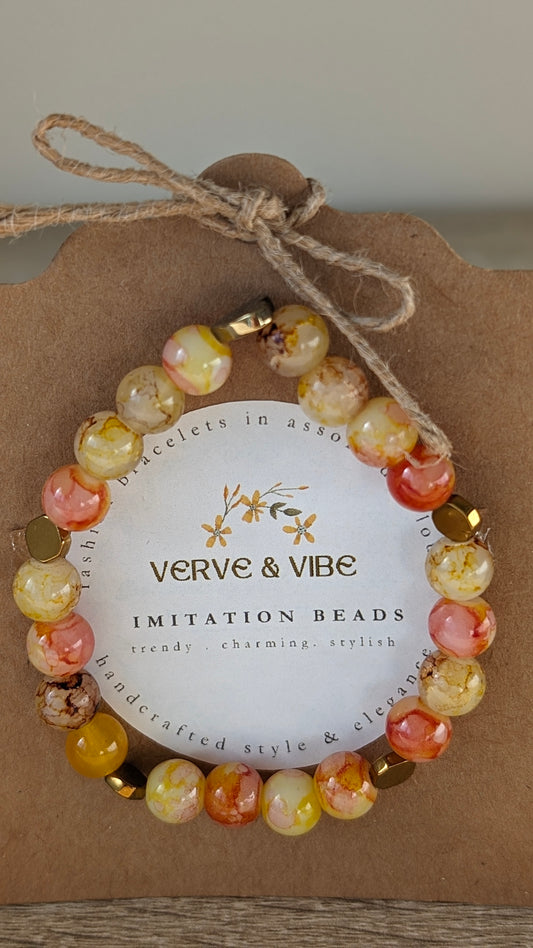 Pretty Orange Yellow with Golden Beads, Imitation Quartz Bracelet