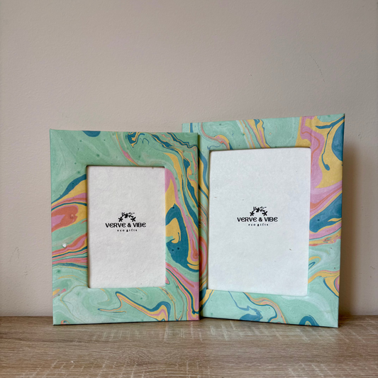 Seafoam Whispers- Marbled and Recycled Paper Board Photo Frame