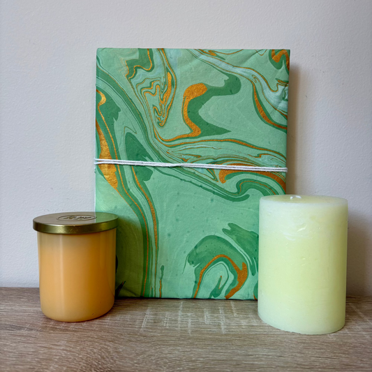 Sublime Sage - Marbled Cover and Flower Paper, Handmade Blank Journal
