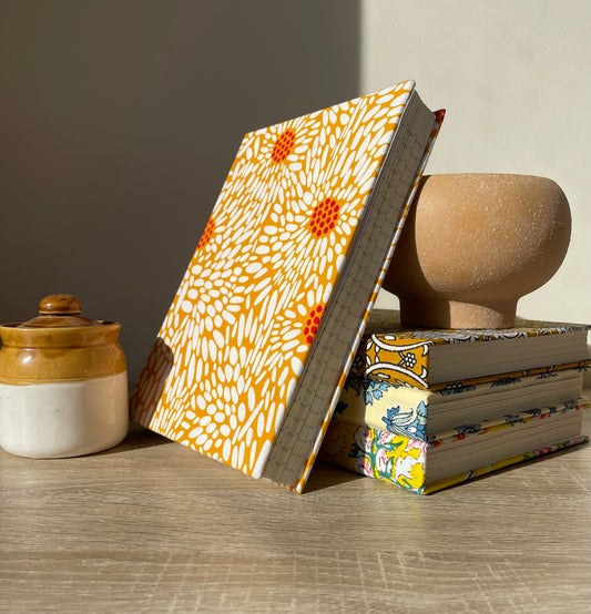 Sunny Daisy -Fabric Cover, Handmade Paper, Blank Journal