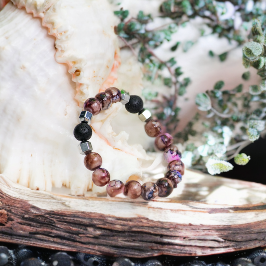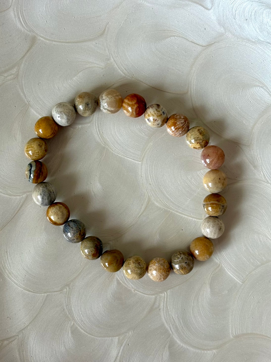 Coral Jasper Agate - Semi Precious Stone Bracelet