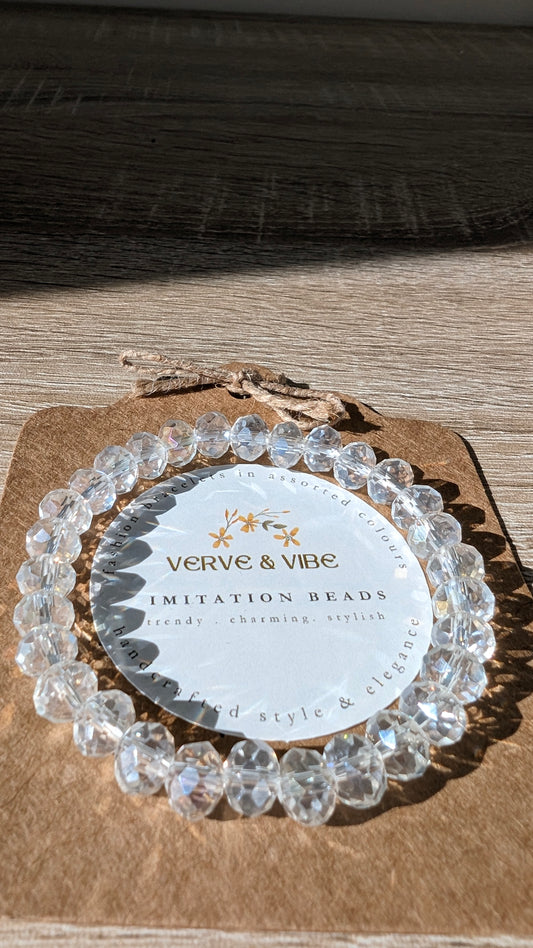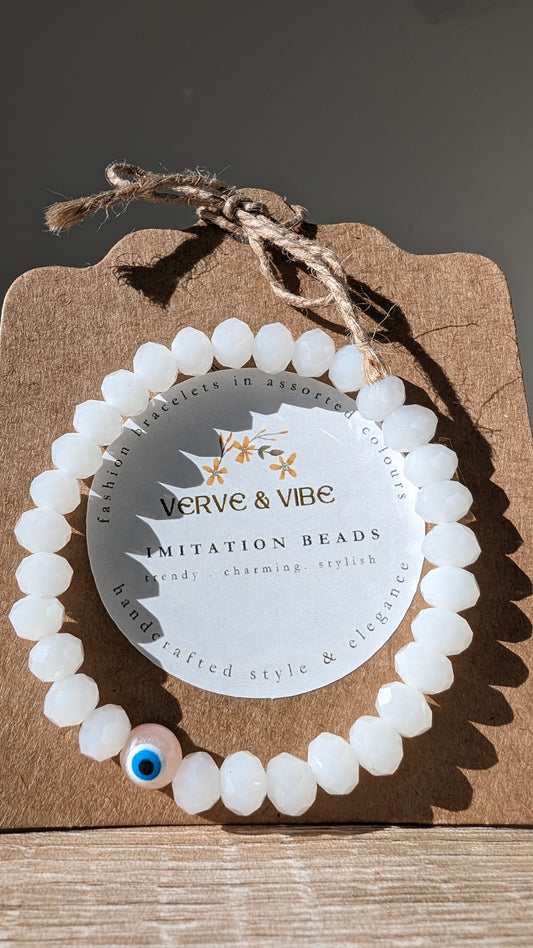 Crisp White with Bull's Eye, Imitation Quartz Bracelet