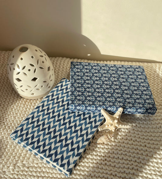 Chevro Indigo - Fabric Cover, Handmade Ruled Notebook