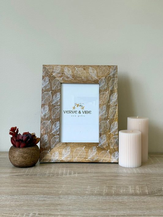 Delicate Leaves - Handcrafted Mango Wood Photo Frame