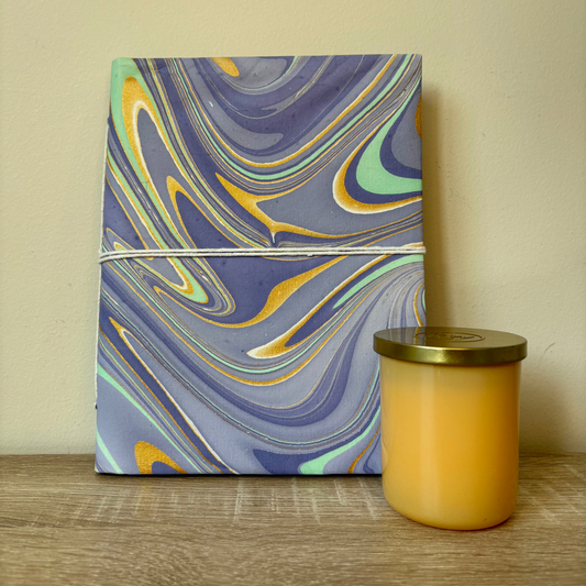 Dreamy Jacaranda - Marbled Cover and Flower Paper, Handmade Blank Journal