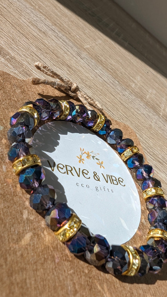 Elegant Purple with golden beads, Imitation Quartz Bracelet