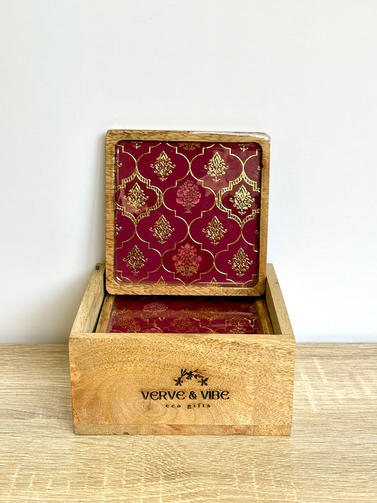 Fuschia Gold - Wooden Coasters, Set of 4 in Box
