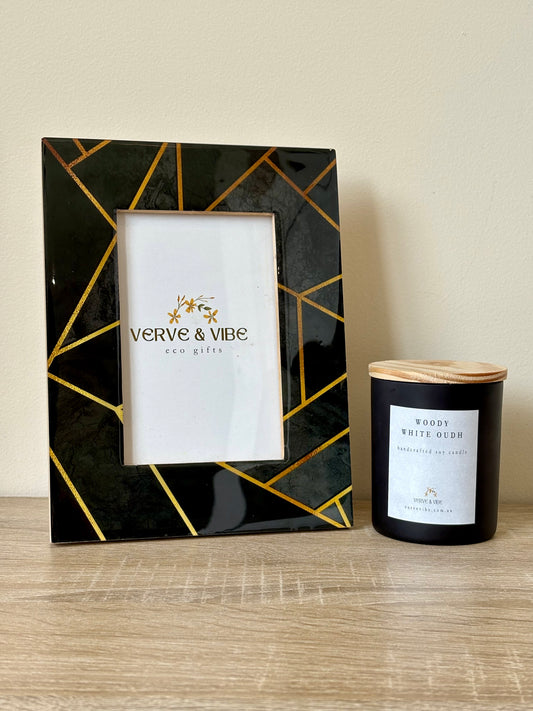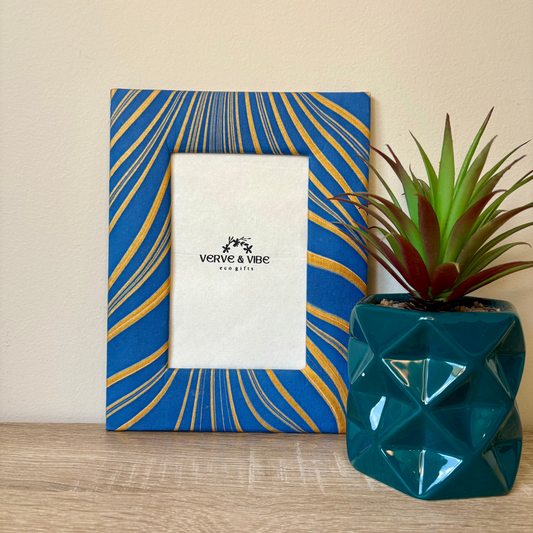 Golden Sapphire - Marbled and Recycled Paper Board Photo Frame
