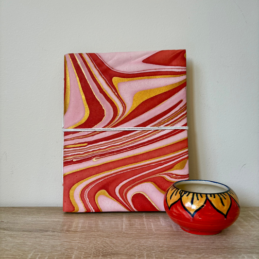 Glowing Aura - Marbled Cover and Flower Paper, Handmade Blank Journal