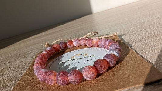Frosted Agate Semi Precious Stone Bracelet, Deep Rose Pink