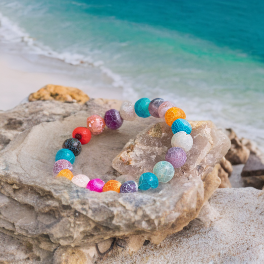 Frosted Agate Semi Precious Stone Bracelet, Multi Coloured