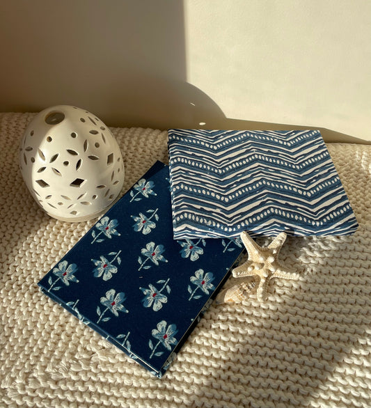 Geo Indigo - Fabric Cover, Handmade Ruled Notebook