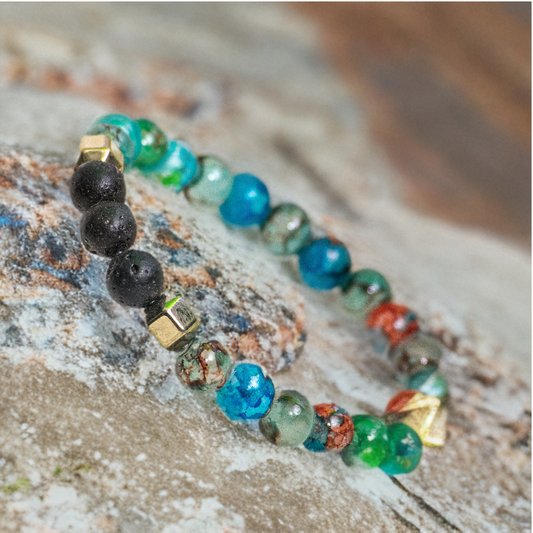 Multi Coloured Bracelet with Oil Diffusing Lava Stones