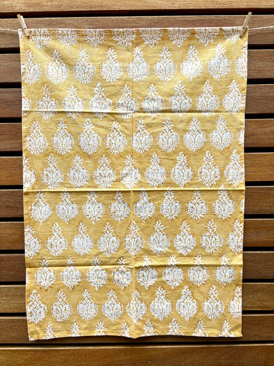 Golden Honey & Ivory - Hand-block Printed Cotton Tea Towels, Set of 2