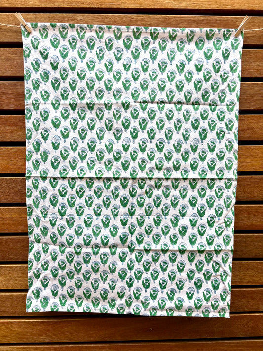 Lagoon Green - Hand-block Printed Cotton Tea Towels, Set of 2