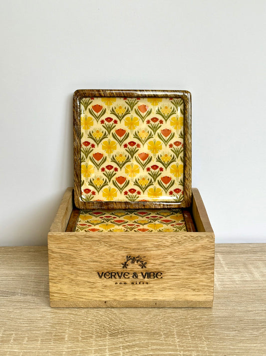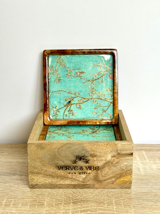 Firozi Flora - Wooden Coasters, Set of 4 in Box