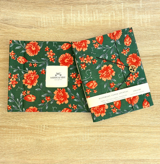 Firozi Flora - Fabric Cover, Handmade Blank Journal