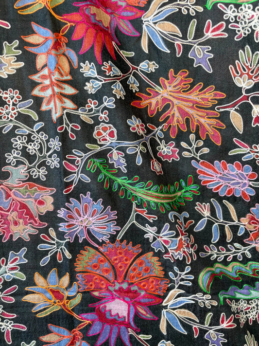 Sozni Jaal - Fine Cashmere Wool Shawl in Classic Black with Delicate, Heritage Embroidery