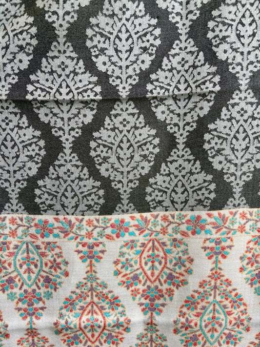 A celebration of timeless elegance and nature’s artistry, the Paisley & Petals Collection brings together the delicate charm of florals with the graceful swirl of classic paisley motifs. Each shawl and stole in this stunning series is handcrafted in fine wool, blends & modal. Adorned with intricate embroidery inspired by Kashmir’s botanical beauty and rich textile heritage.