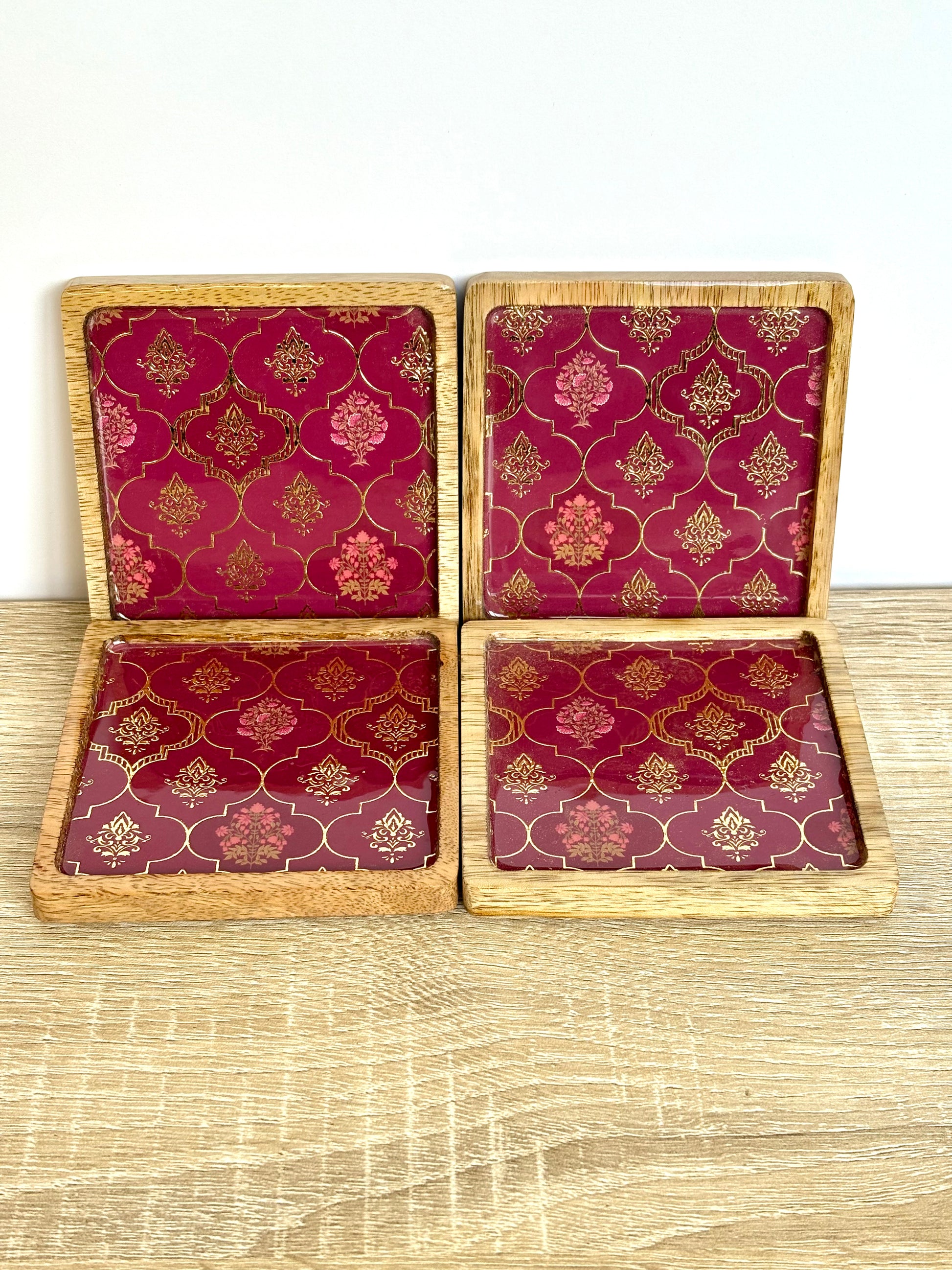 Fuschia Gold - Wooden Coasters, Set of 4 in Box