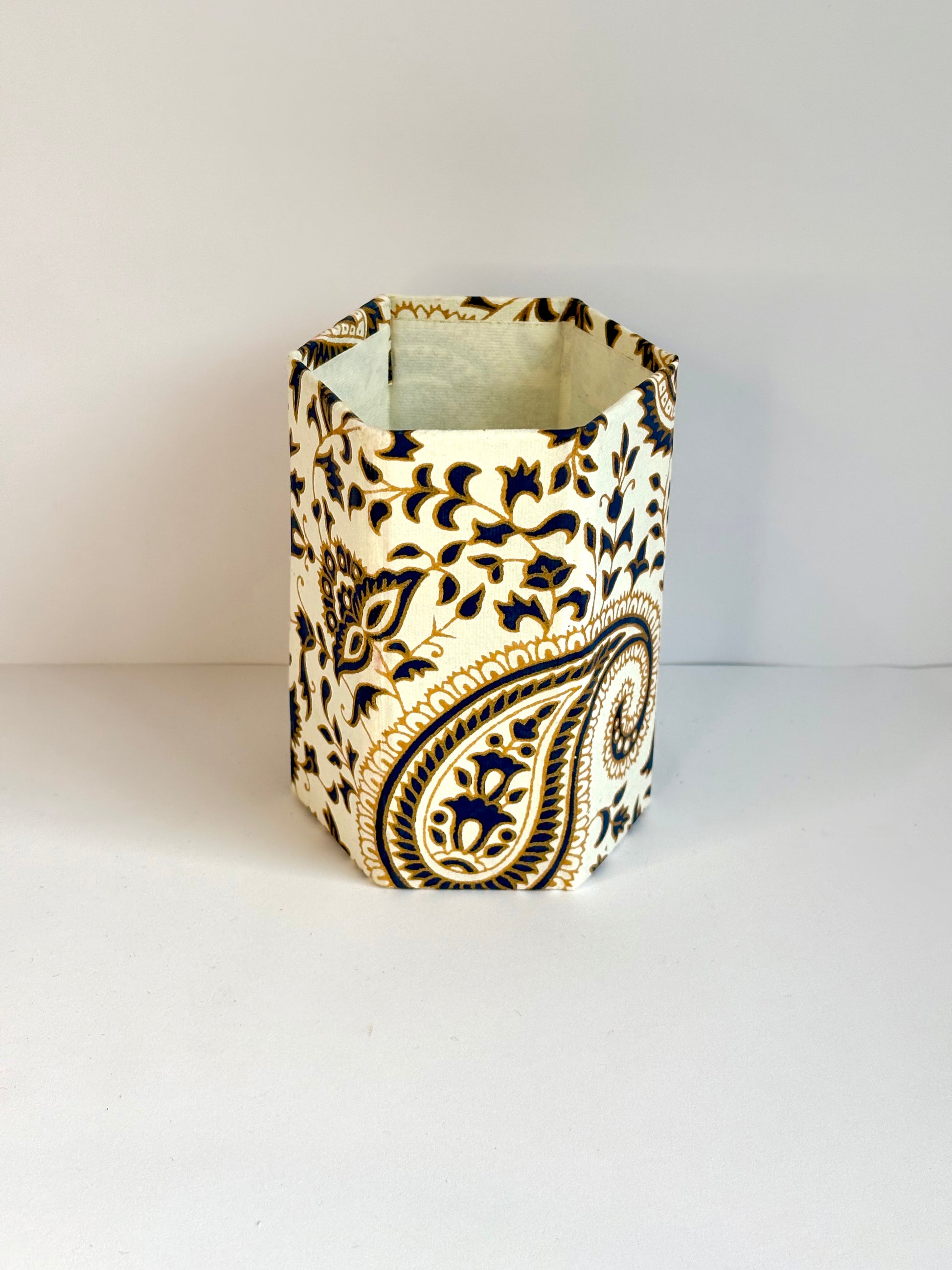 The handmade memo block features a sturdy hardboard box with a secure lid for durability and to keep the paper inside tidy. The pen holder easily folds flat for travel or storage and pops open when it’s time to work or study.
