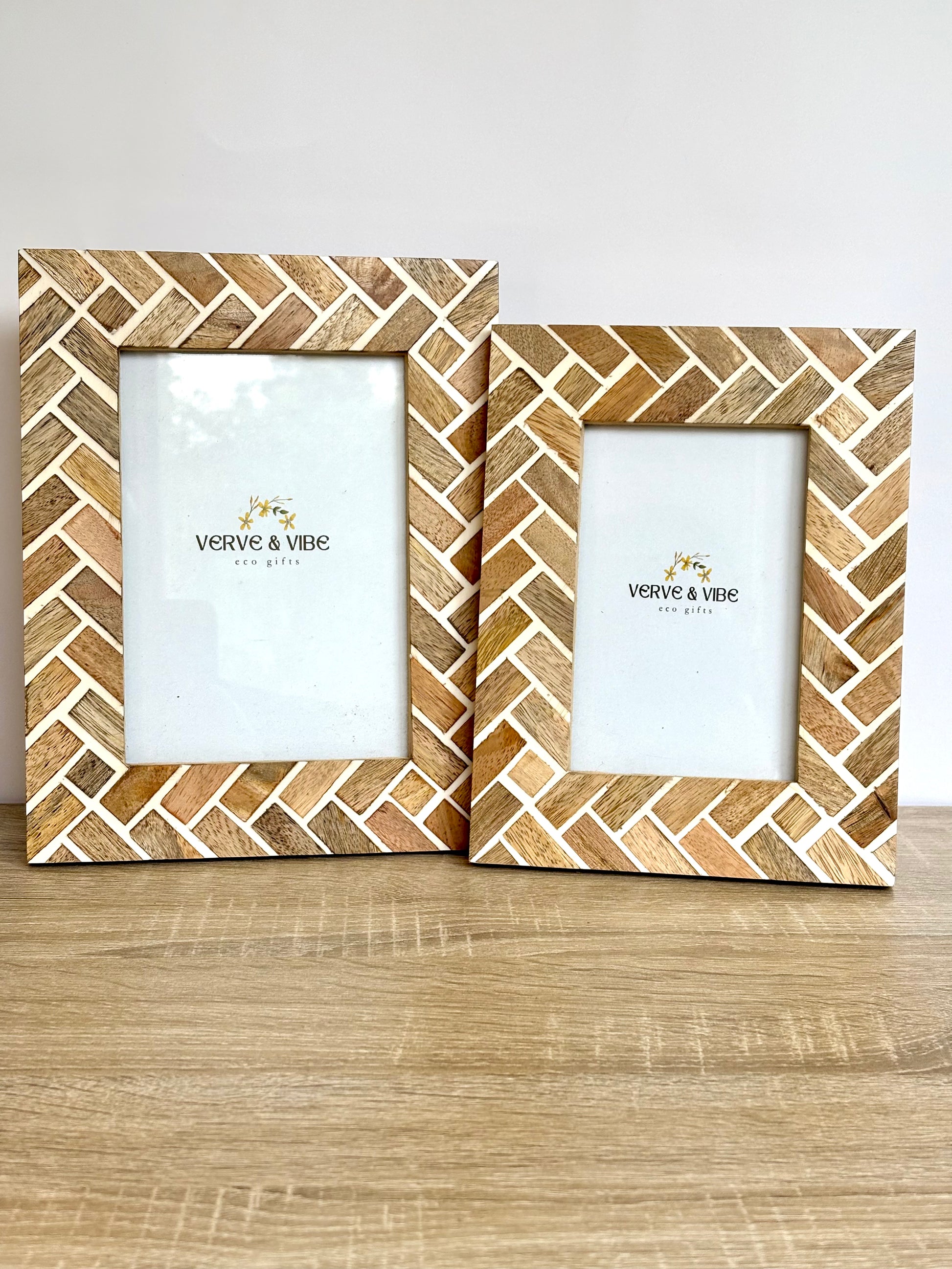 Herringbone Elegance - Handcrafted Mango Wood Photo Frame