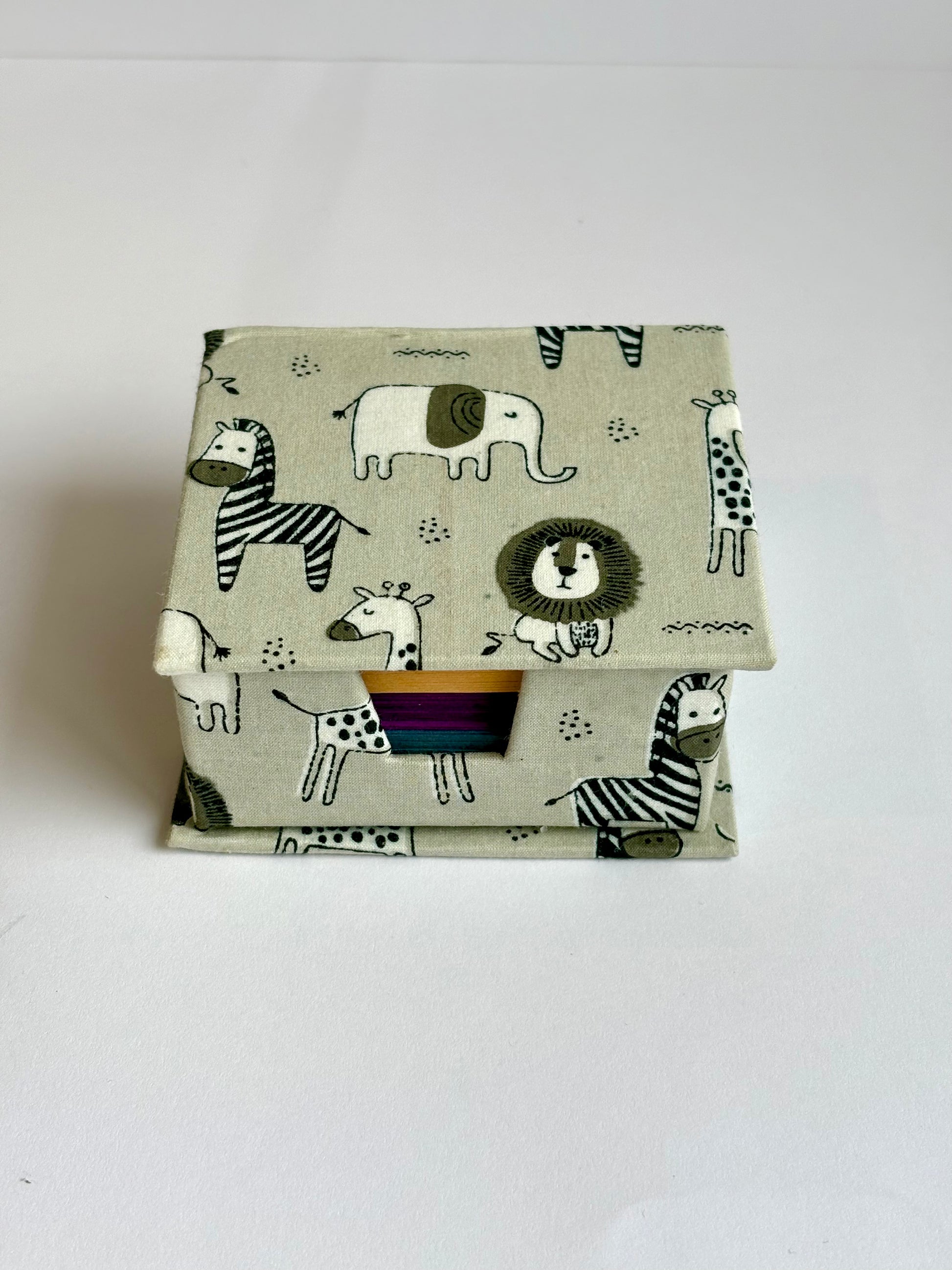 Each set includes fun, vibrant fabric-covered craft journal, photo frame, collapsible pen holder, 3 scented writing pencils and memo box, filled with handmade, 100% recycled, eco-friendly paper in colourful hues.