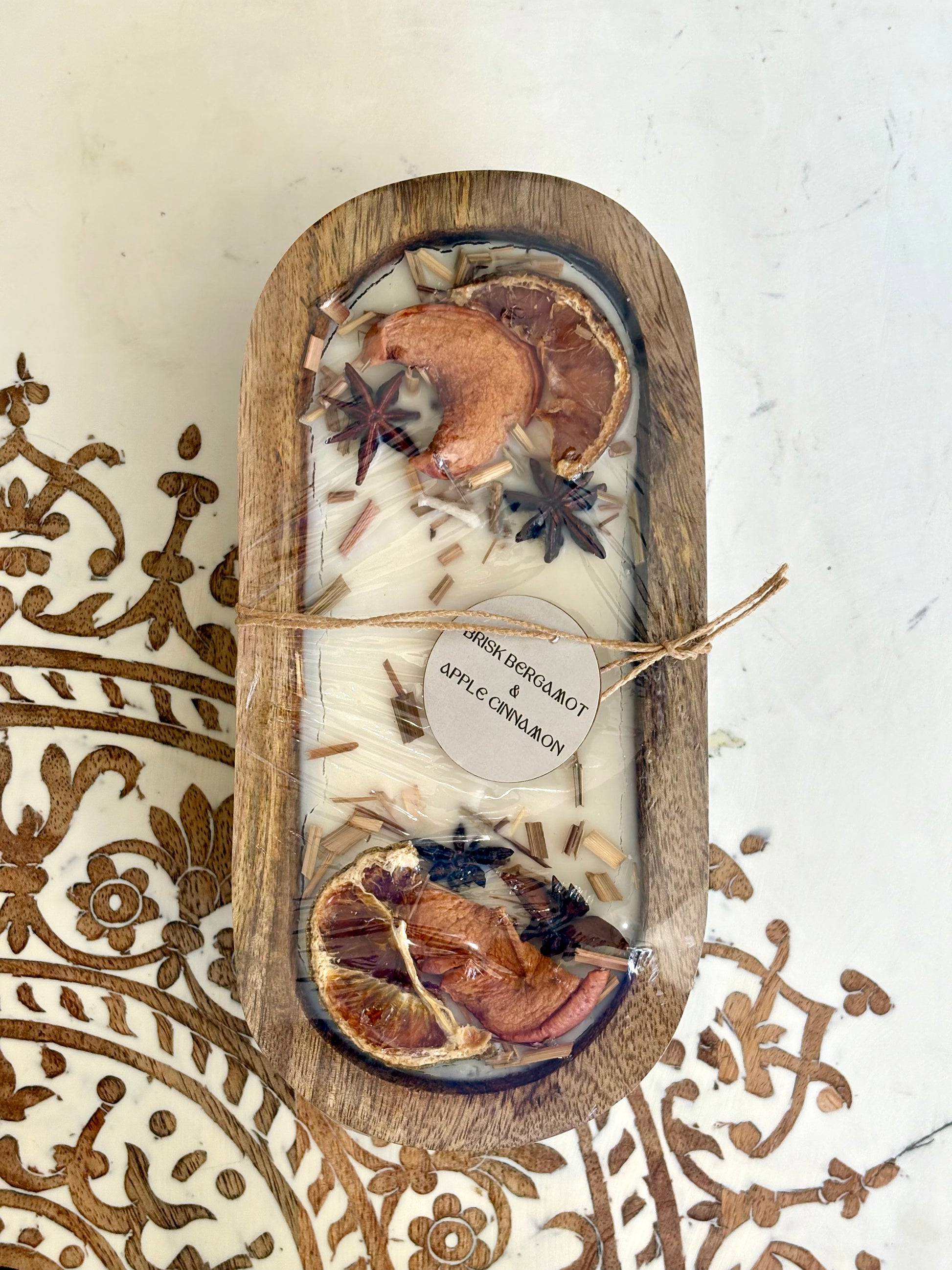 Luxe Wooden Dough Bowl, Soy Wax Candles - Infused with Essential Oils, 400g